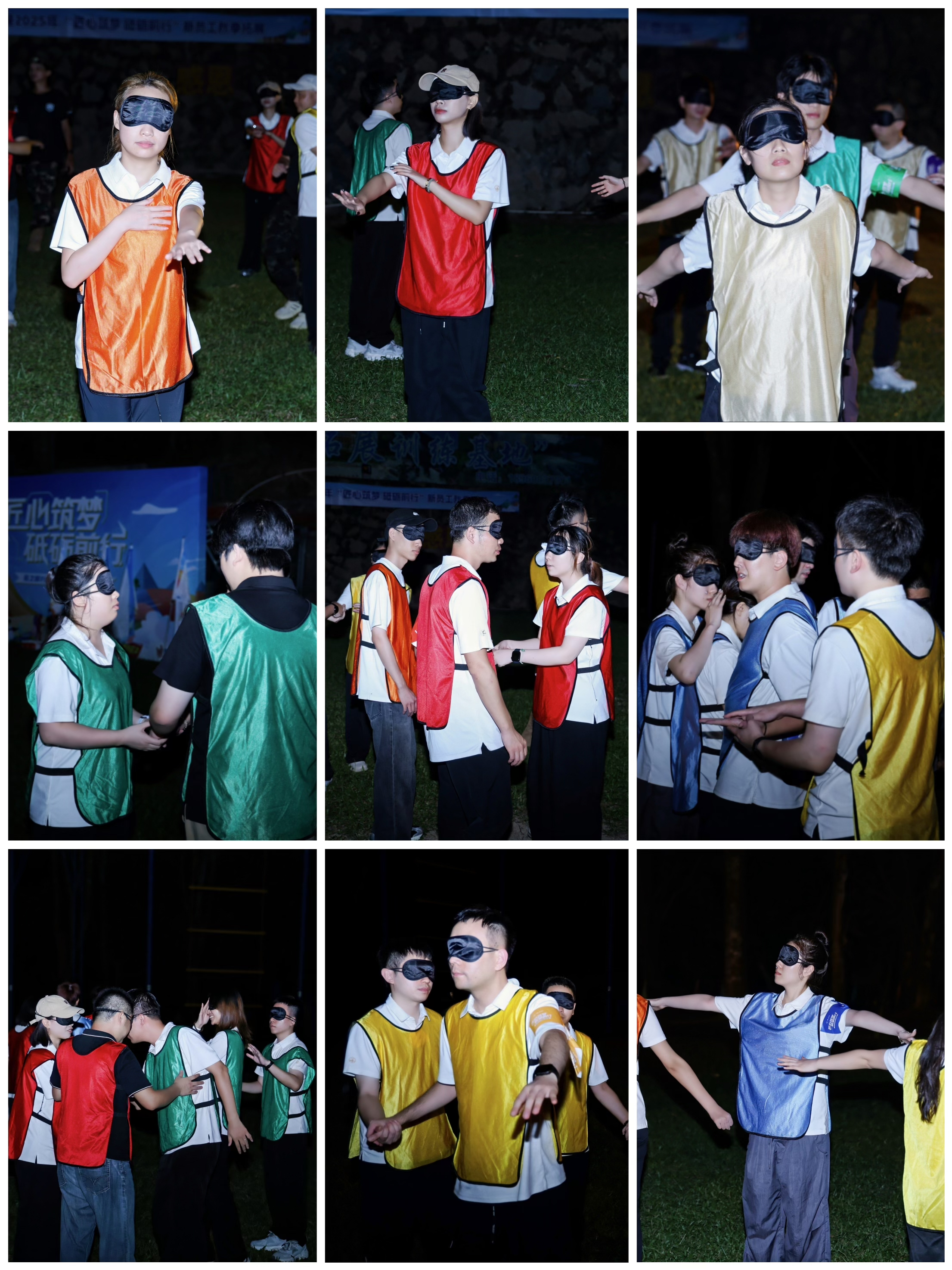 隨著夜幕降臨,“找回團隊”項目將整場拓展推向新的高潮。隊員們被蒙住雙眼,在黑暗中尋找隊友,每當遇到人的時候只能通過除語言外的其他方式及彼此默契來確認是否是團隊同伴。游戲過程中,已經(jīng)找回的隊友會被教官重新拆散,團隊不僅需要再次找回成員,還需要緊緊守護隊友,堅定彼此的選擇。那一刻,嘈雜的干擾聲遠去,只留下對伙伴的信任指引方向。當雙手終于相握,這份在困境中建立的羈絆,讓團隊的凝聚力愈發(fā)堅實。隨后的復(fù)盤會上,隊員們圍坐分享收獲、梳理經(jīng)驗,再一次體會到團隊信任與凝聚的力量。